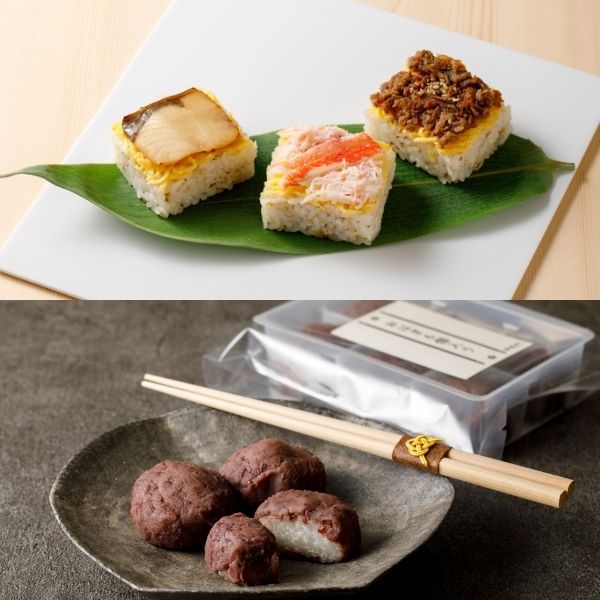 【ギフトおとりよせ】笹蒸し寿司4個とおはぎ6入セット[冷凍]