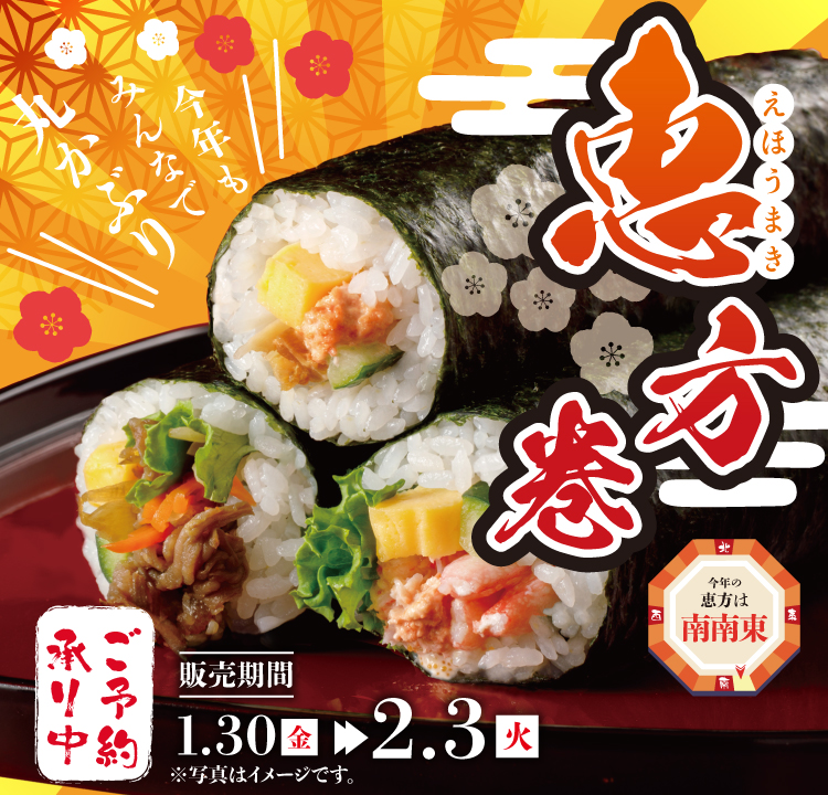 2月3日・節分当日の恵方巻のご予約は、2月1日(日)17時で受付を終了いたします。